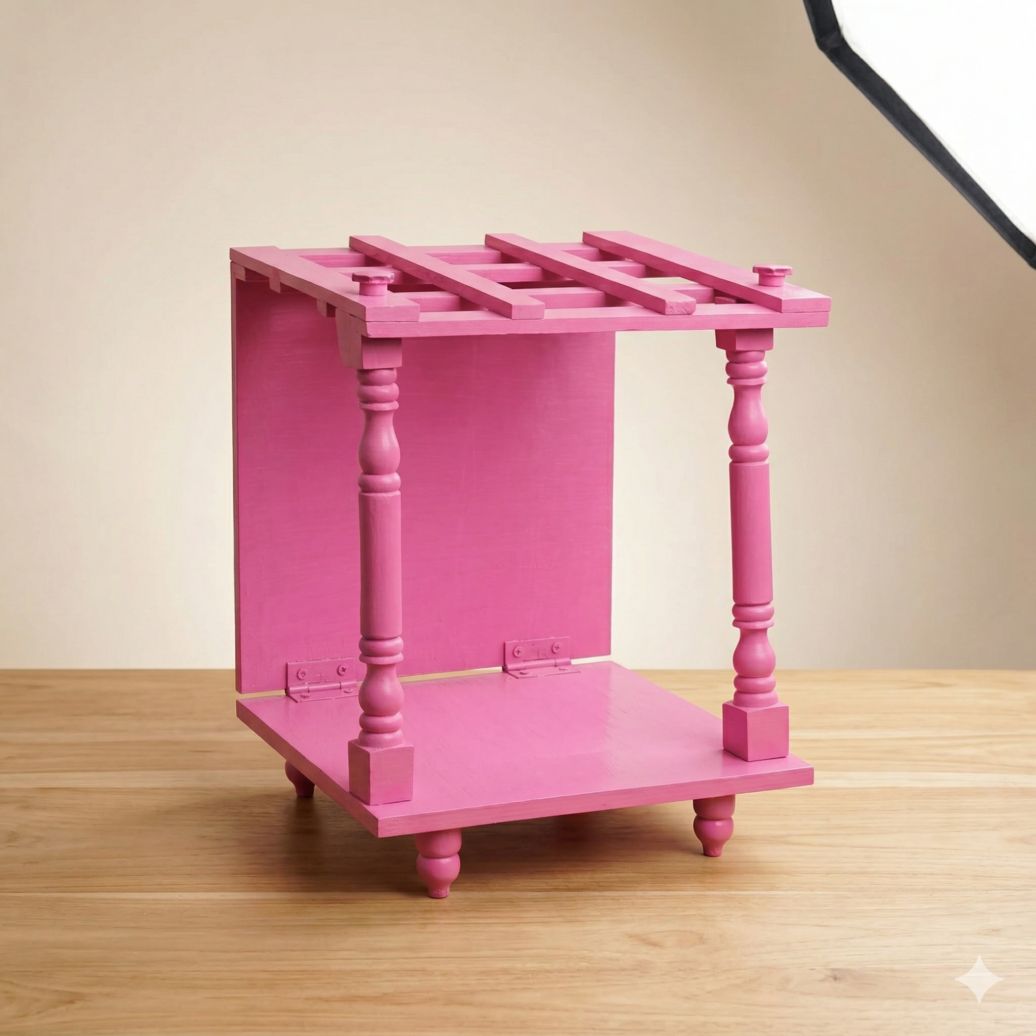 Solid 12inch x 12inch Wooden Foldable Mandap Pooja Mandir Pink Colour