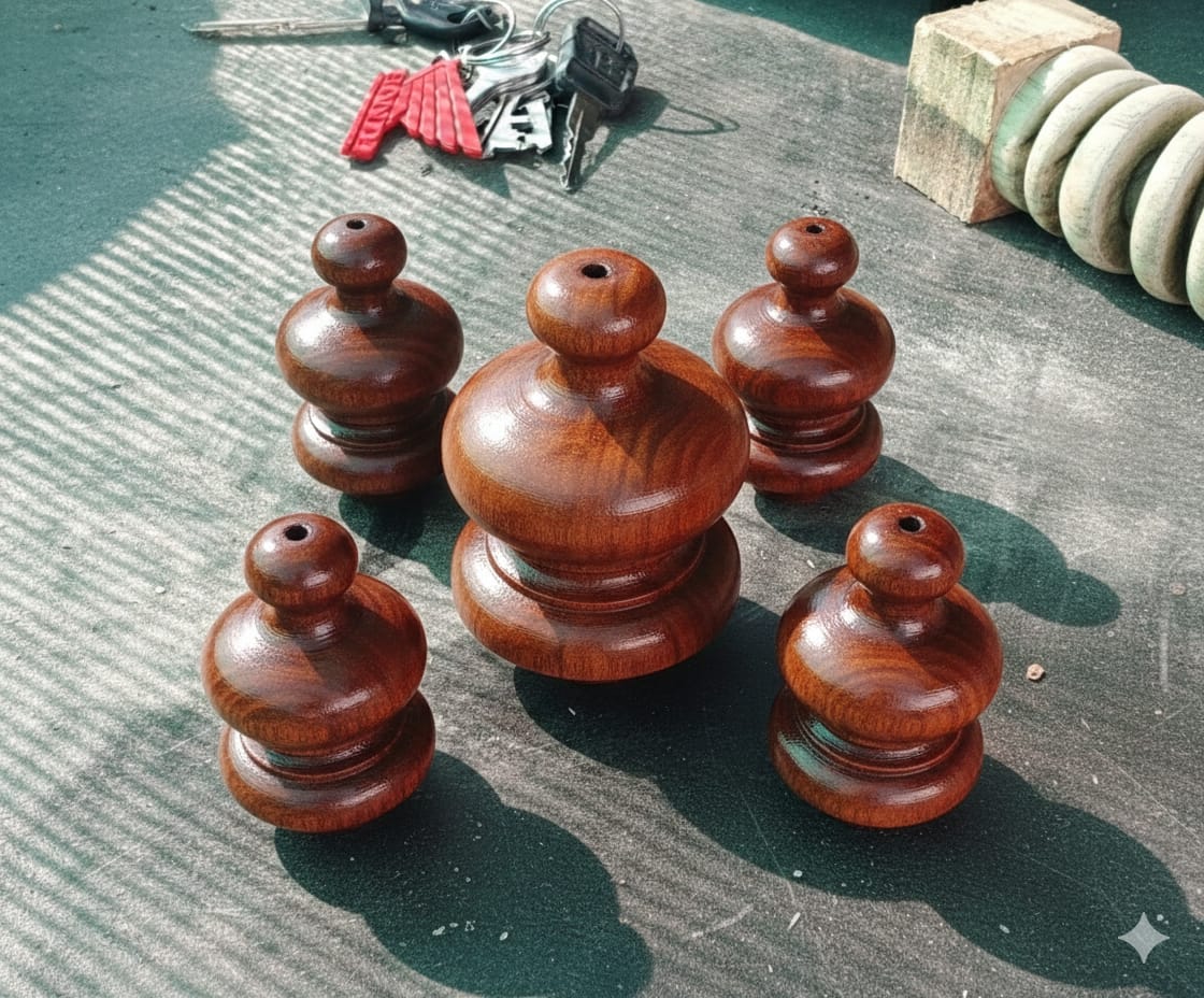 Mandhir Teak Kalash Set Of one Big (5inch) And 4no. Of Small (4inch)